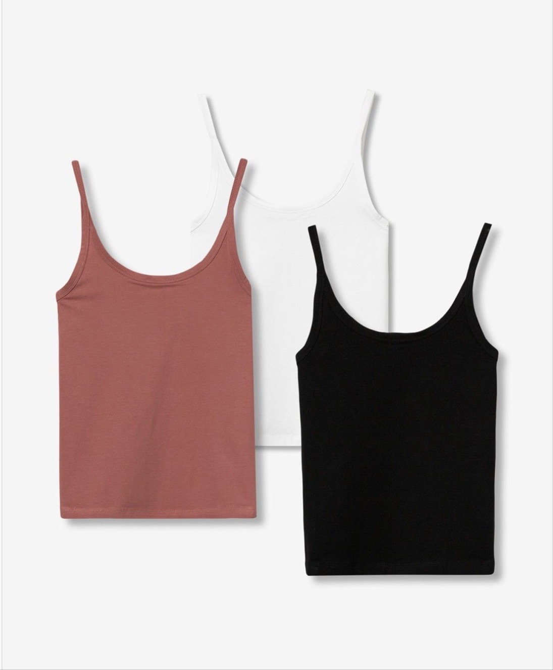 Top super slim de color negro, blanco y rosado de tirantes finos y escote redondo, rollo casual chic moderno.